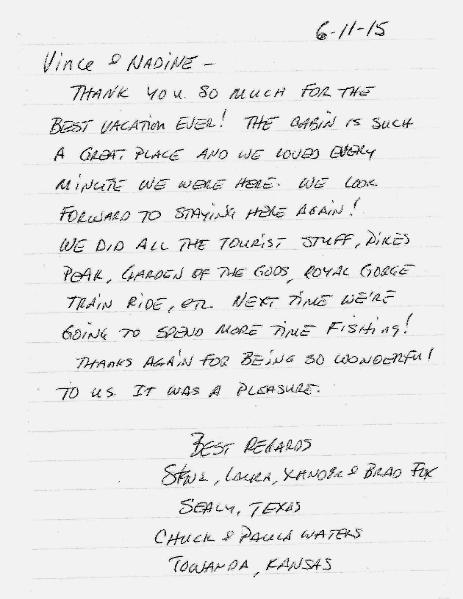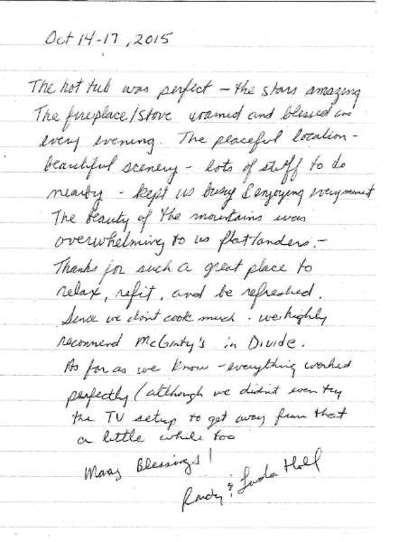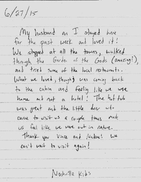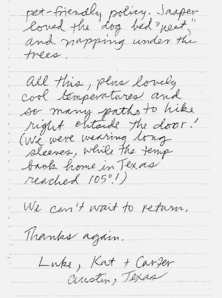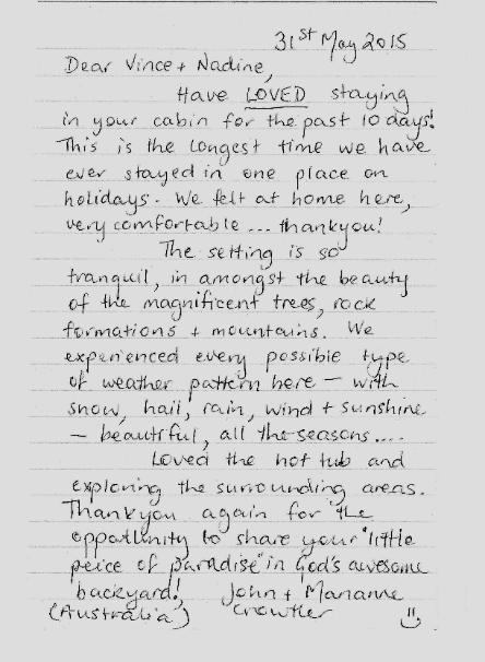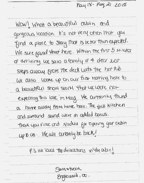 Twin Rock Reflections: What cabin guests wrote about their stay...