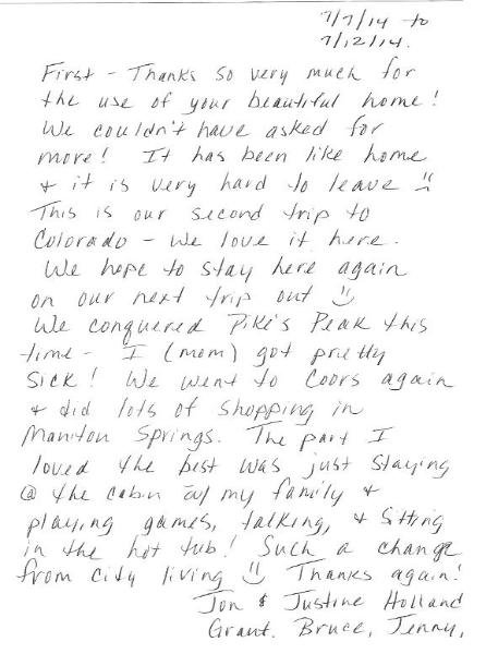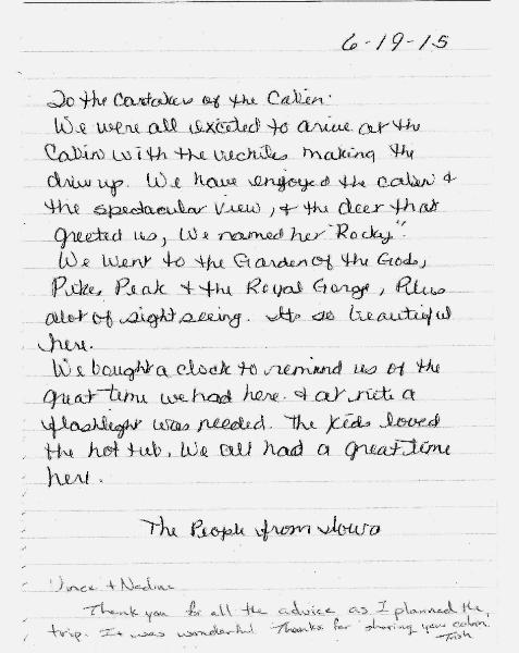 Thanks to all the guests who have stayed at the Twin Rocks cabin during our first two